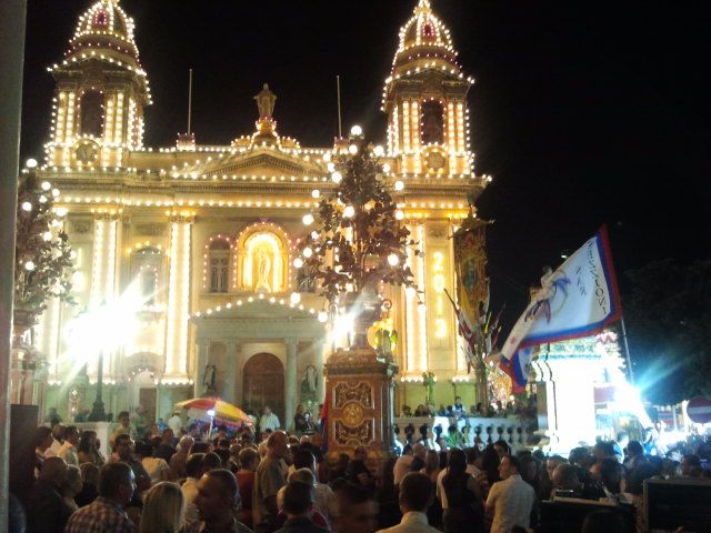 Wylądowałam dosyć późno, bo o godzinie 22:30, jednak to nie przeszkodziło mi, aby w drodze do hotelu zatrzymać się w miejscowości Marsa, w której akurat odbywała się festa. Cóż to takiego? Sama zadałam sobie to pytanie, gdy zobaczyłam to, co działo się na ulicach miasta. Festa to odpust z okazji święta patrona danej parafii. Jednak nie jest to taki odpust jak w Polsce :). Tam, przygotowania rozpoczynają się na tydzień przed – dekorowany jest kościół, ulice i domy, a także przygotowywane są fajerwerki na specjalny pokaz (które zresztą Maltańczycy uwielbiają).